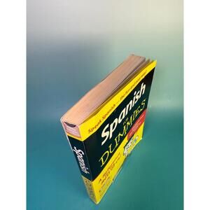 This is a pre-owned copy of Spanish for Dummies (Paperback) in decent condition. The book has some signs of use, including a couple of folds, slight yellowing of pages, and scuffs/scratches on the cover. Despite these imperfections, it’s still fully readable and would be a great resource for anyone looking to learn Spanish.