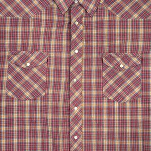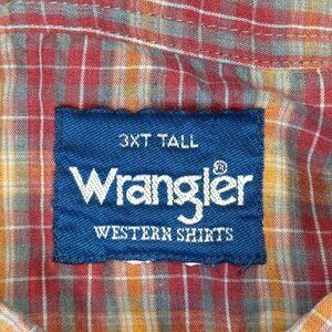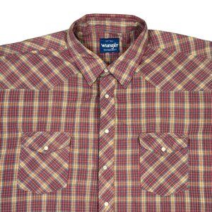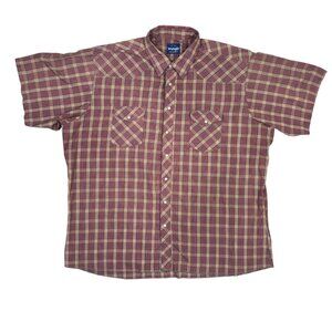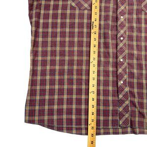 Wrangler Pearl Snap Shirt Mens 3X Tall Plaid Red Short Sleeve Ranch Western 3XT