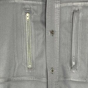 Zipper closures on pockets.