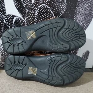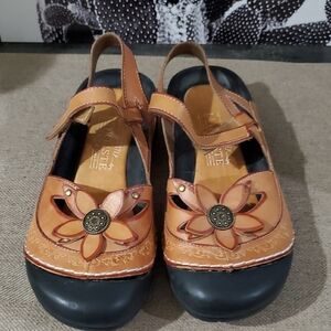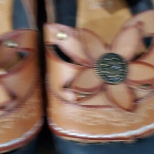 Stylish brown leather sandals featuring a unique floral design. Perfect for casual outings.