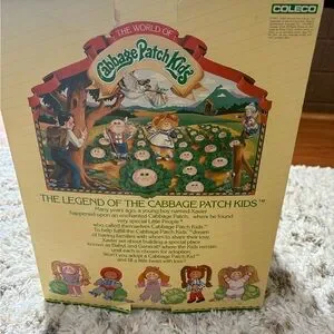 Cabbage Patch Kids Olive Zelda with birth certificate and adoption papers. Includes original documents with green and pink accents. Doll never removed from box.