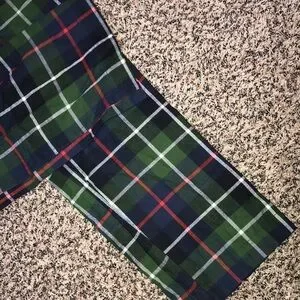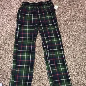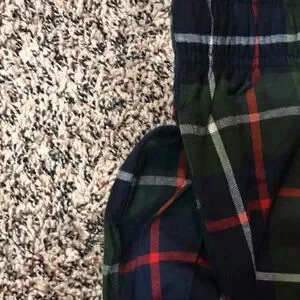 Comfortable plaid lounge pants with a drawstring waist. Features a classic check pattern in green, red, navy, and white.