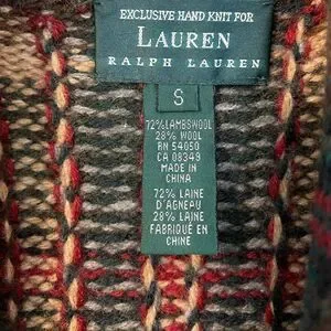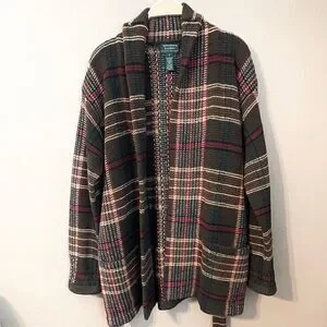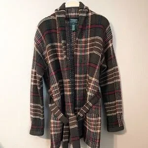 Lauren Ralph Lauren Hand Knit Lambswool Brown Plaid Tie Waist Cardigan Size S