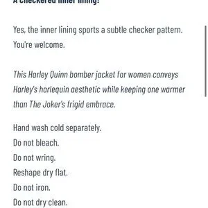 Perfect for fall and comic cons! Wore this only once to a comic con convention when cosplaying as Harley Quinn. This is a Batman DC comic brand. For reference I am 5’5 140 pounds this is a size small but fits like a medium. I’m more into a snug fit.