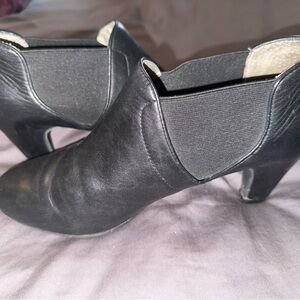Aetrex Black Leather Heeled Ankle Booties - sz 8.5
