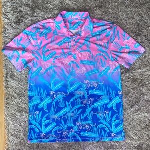 Chubbies Pink and Blue with Tigers Stretch Collar Shirt size Medium