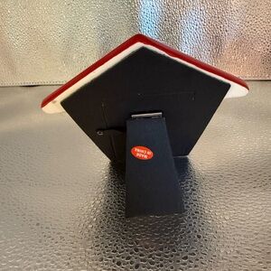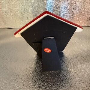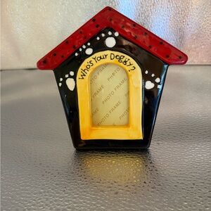 Showcase your pet's photo in this charming dog house frame. Featuring a playful red and black design, it's perfect for any pet lover's home. It’s 5 inches tall and 3 1/2 inches wide