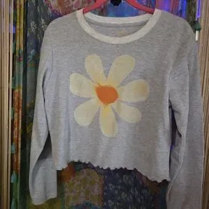NATURAL LIFE Gray Crop Top with Daisy Design