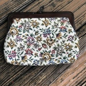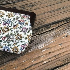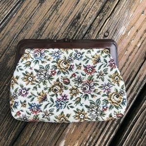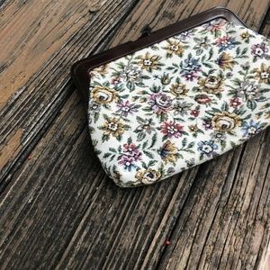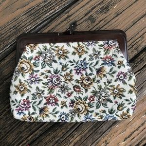 Floral Tapestry Purse Handbag Bag Clutch Cream Pink Green Blue Vintage 50s 60s