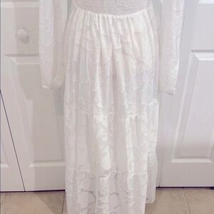 This chic long sleeve white dress offers a timeless look for any occasion. Its elegant design ensures a flattering fit.