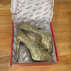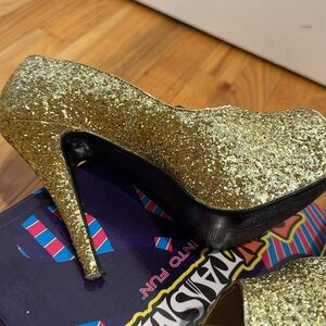Fun Taisma Gold Glitter Peep-Toe Pump High Heels shoes Sz 9 original box