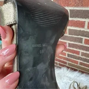 Nine West Shiny Gold Strappy Open Toe Sling Back Pump Heels