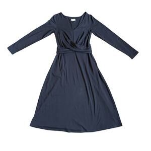 Pact Revive Wrap Front Midi Dress Black Sz M Minimalist Organic Cotton blend