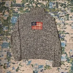 Cozy turtleneck sweater with a bold flag patch. Perfect for adding style to your wardrobe.