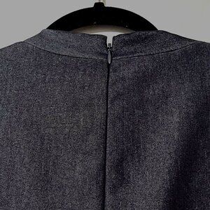 This sophisticated sheath dress by White House/Black Market highlights a sleek silhouette with a deep V-neckline and a back kick pleat for ease of movement. Fully lined crafted in dark blue, it offers a professional appearance suitable for office settings or business events. The dress features a concealed back zipper for a clean and polished look.