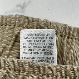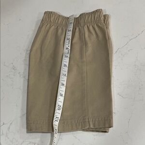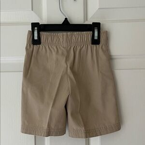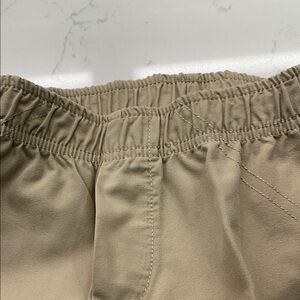 Comfortable tan shorts. Elastic waistband. Perfect for playtime.