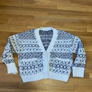 ZARA Black and Ivory Oversized Chunky Knit Cozy Cardigan Women’s Medium