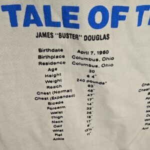 Vintage Douglas vs Holyfield graphic men's sweatshirt. Featuring a bold blue print on white background, this shirt is perfect for fans and collectors alike.