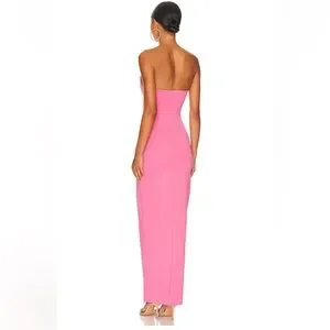 Chic strapless design. Bold pink hue. Features a thigh-high slit. Ideal for elegant events. Worn once. In great condition.