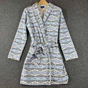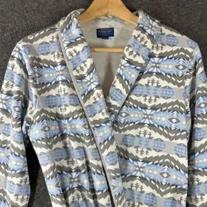 PENDLETON Harding Robe Womens Small Blue Grey White Geometric Southwestern Cozy