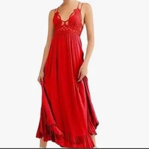 NWT Free People Adella Slip Long Dress XS Bright Red