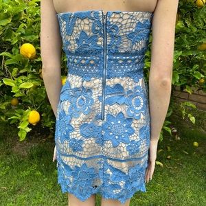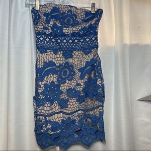 NWOT - Endless Rose - Blue & Nude Lace Strapless Mini Dress