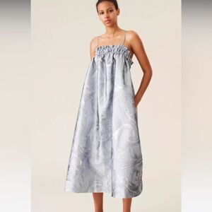 Ganni Silver Jacquard Patterned Dress NWT