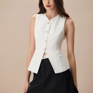 Rihoas White Single-breasted Cotton Vest