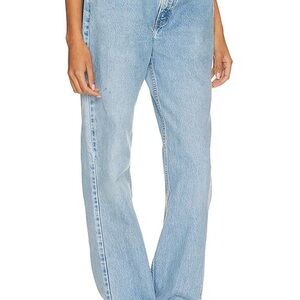 These Alyssa Tilted Split Customs in Light Medium feature reclaimed vintage denim crafted into a refined 5-pocket design with distinctive offset rear pockets. Subtle light whiskering adds character, while the split detail at the cuffs offers a modern, elegant twist. Perfect for those seeking a sophisticated yet unique denim statement.