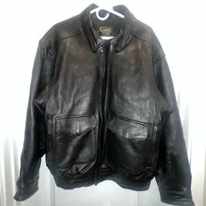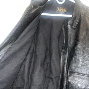 Vintage Scully Black Pebble Leather Flight Bomber Jacket Mens XL Flannel Lined