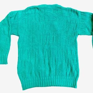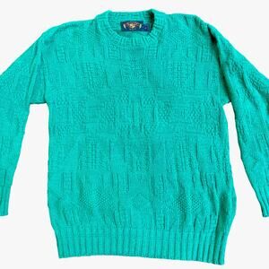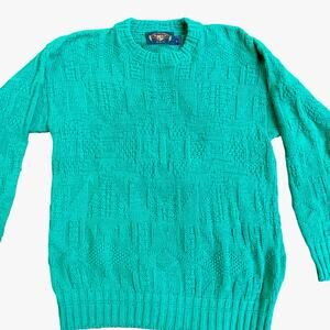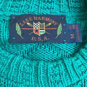 Vtg Lake Harmony USA Knit Sweater Sz M Textured Teal Southwestern Preppy