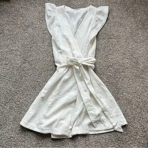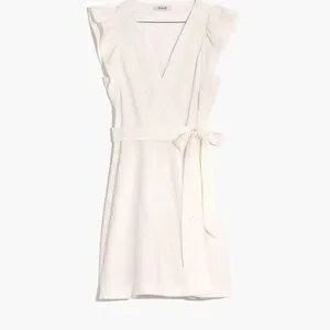 Madewell Ruffle-Sleeve Wrap Mini Dress in White Size Small