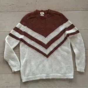 Sezane Joy Caramel Chevron Mohair Ecru Pullover Sweater
