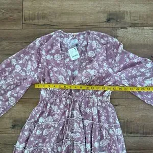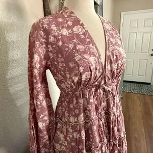 NWT Free People Womens Floral Balloon Sleeve Tiered Pappiet Midi Dress Rose Combo Medium