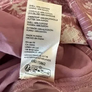 Material: 100% Cotton / Lining: 100% Rayon