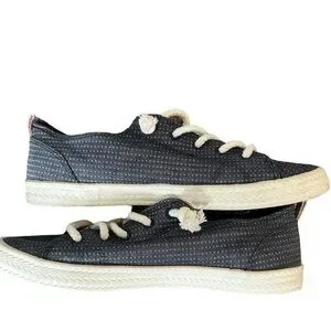 Billabong women’s slip on flat sneaker with nice cushion insole. Rope like ties up front with elastic stretch for easy on and off.
