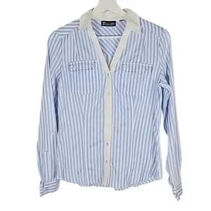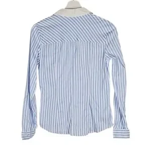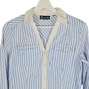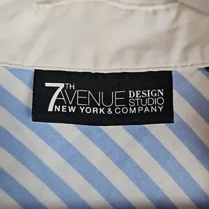 7th Avenue Classic Pinstripe Dress Shirt Light Blue, White Trim, Women's XS