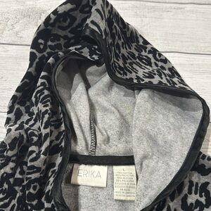 Erika Women’s Black and Gray Leopard Print Hooded Velour Jacket