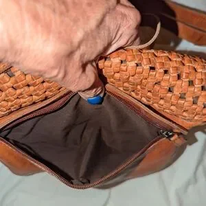 Discover timeless elegance with this woven leather crossbody bag in a rich brown hue. Ideal for everyday wear, it offers both style and functionality.