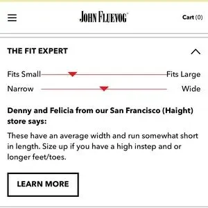 Regarding fit: see pic with sizing notes from Fluevog experts