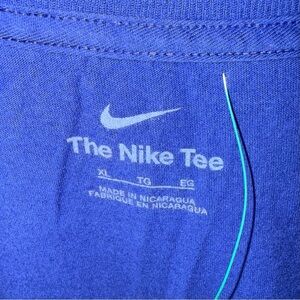 Classic blue Nike tee. Features white logo print. Comfortable and stylish.
