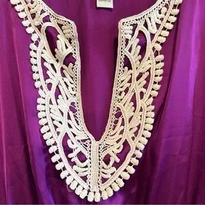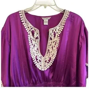 Fun and Flirt Women's Purple Boho Tunic Top with Crochet Trim Size Large