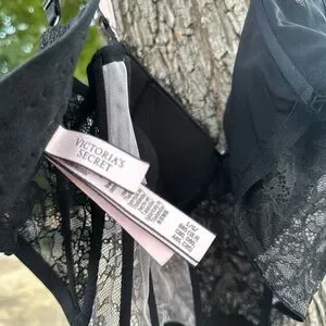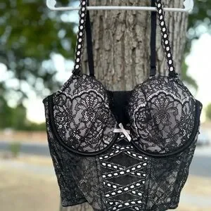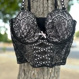 Victoria's Secret Black Lace Bustier with Pink Details