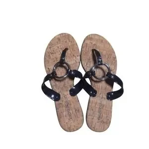 Bernardo Cork Sandals Black Ring Accents Thong Flip Flops Summer Shoes Size 9