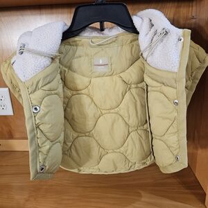 OS FreePeople Poncho. Pale Green. Hooded. Snap Closure. Pocket. Quilted. Short