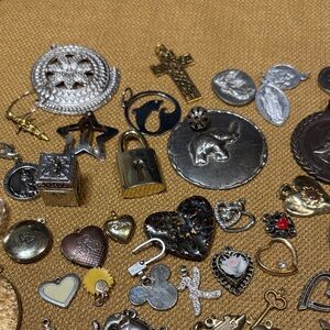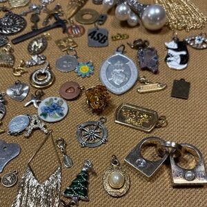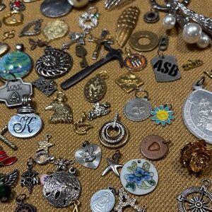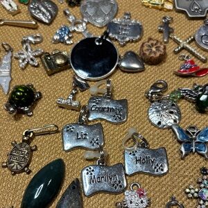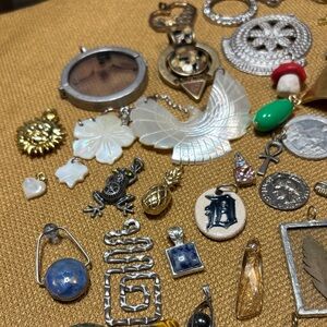 Perfect for jewelry making! Many different materials and styles. There are multiple lockets. Great stone pendants in this lot. Almost all are in great condition. I did see 1-2 that have some wear. Many don't have jump rings-just FYI.