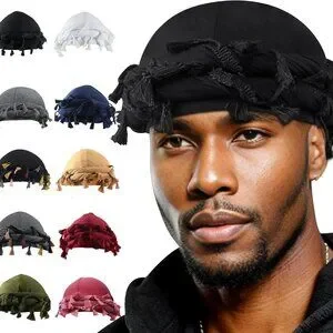 Halo Turban for Men Women Satin Lined Durag Head Wraps Skull Cap Pre-Tied Tassel