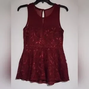 🎀Elegant Scobe Burgundy Lace Peplum Shirt - Junior's Medium🎀