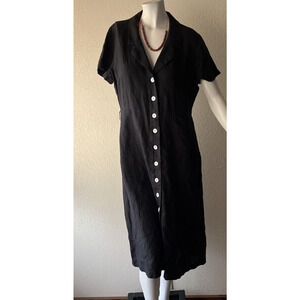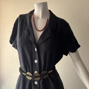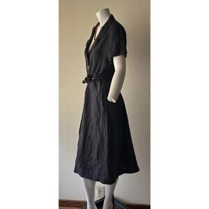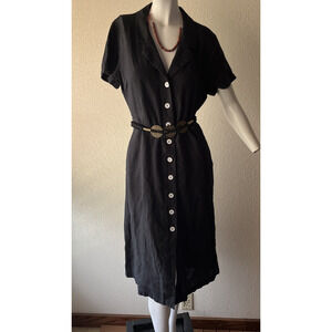 Quince 100% European Linen Button Front Dress | Black |Medium | Missing Belt