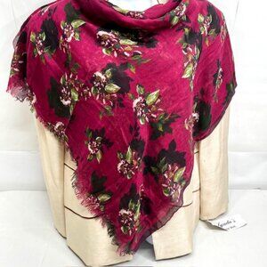 Vgt DAKS LONDON Scarf Cotton Wool 64"x32" Burgendy Brown Floral Fring ( 49)
